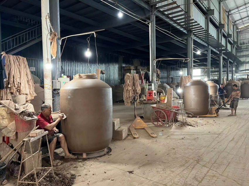 富順縣奇藝陶業(yè)有限公司成立于2021年,是制造、銷(xiāo)售、服務(wù)一體的生產(chǎn)型土陶企業(yè)。注冊(cè)資本1200萬(wàn)元。位于富順縣古佛鎮(zhèn)鳳儀村3組,占地面積200畝。建有8條廂式窯爐,員工人數(shù)180人,年產(chǎn)噸壇、千斤發(fā)酵缸10萬(wàn)余件。這一帶特有的天然原生態(tài)土陶礦泥,將傳統(tǒng)工藝與現(xiàn)代技術(shù)相結(jié)合,生產(chǎn)各類(lèi)規(guī)格土陶酒壇、泡菜壇、發(fā)酵缸系列產(chǎn)品。產(chǎn)品具有不浸不漏,透氣性能好。耐酸堿,耐腐蝕,吸水率低,釉面均勻等特點(diǎn)。